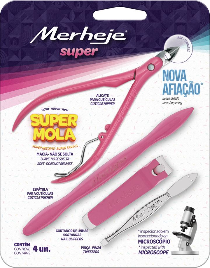 ALICATE PARA CUTICULAS + KIT UN BASIC ESPATULA, CORTADOR E PINÇA ROSA - MERHEJE