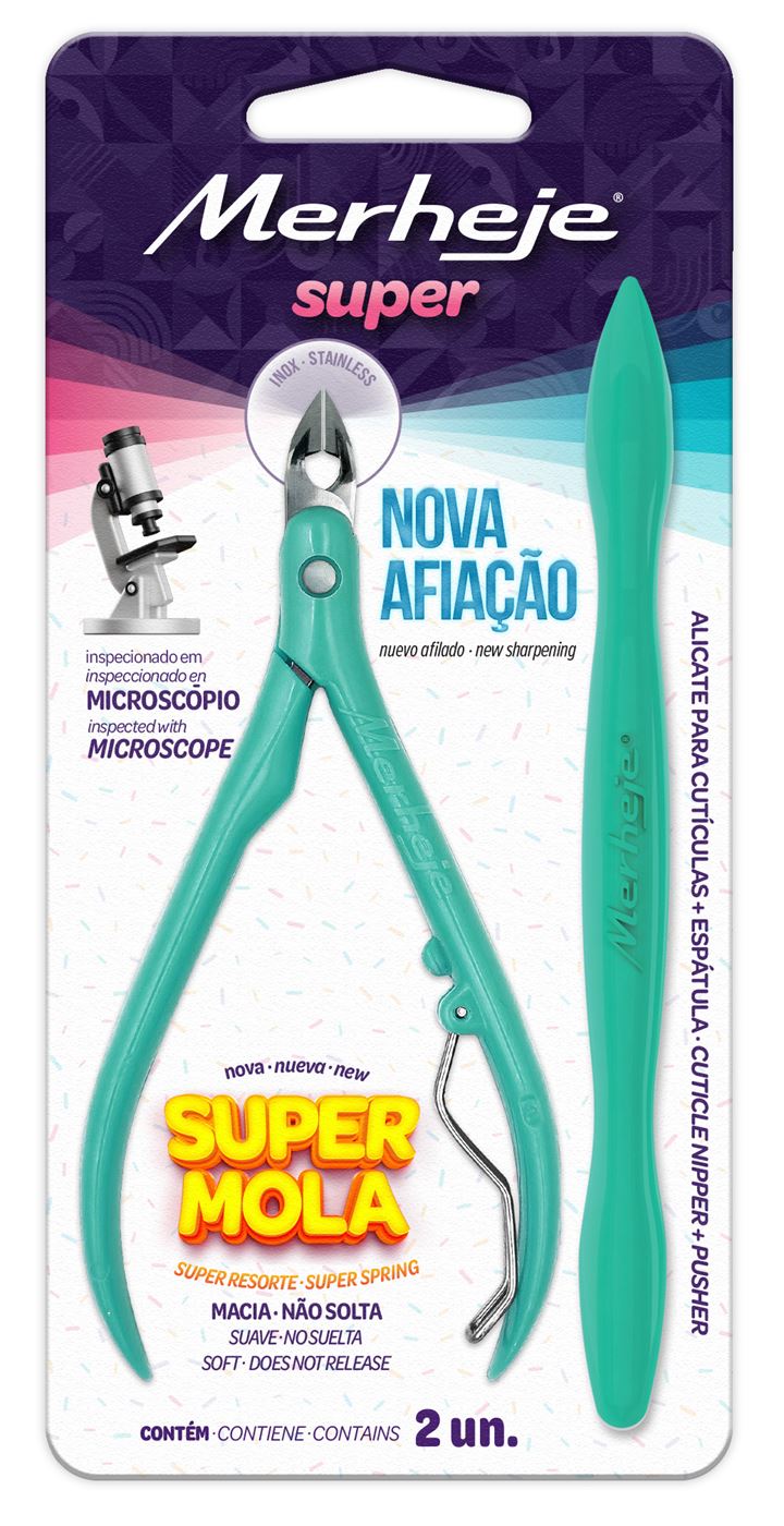 ALICATE PARA CUTICULAS COM ESPATULA UN BASIC SUPER VERDE - MERHEJE