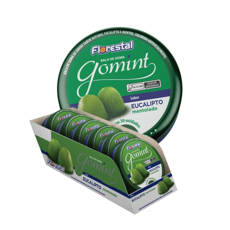 BALAS DE GOMA GOMINT EUCALIPTO MENTOLADO 6 POTES C/ 30 GOMAS - FLORESTAL