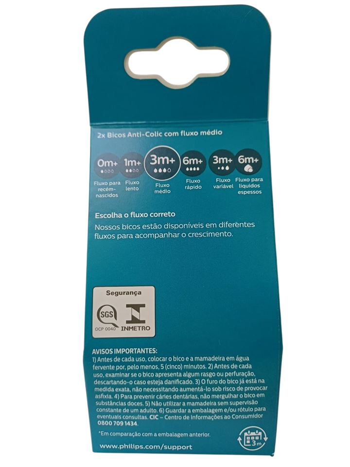 BICO DE MAMADEIRA ANTI COLIC N3 3M+ 2UN SCY763/02 - AVENT