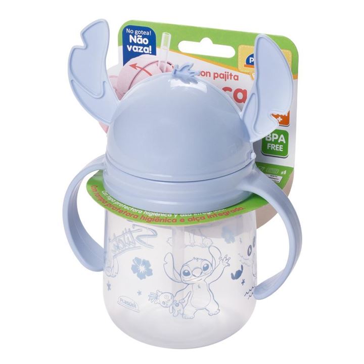 CANECA DE PLASTICO DE TREINAMENTO CANUDO E ORELHAS INFANTIL STITCH 260ML - PLASUTIL