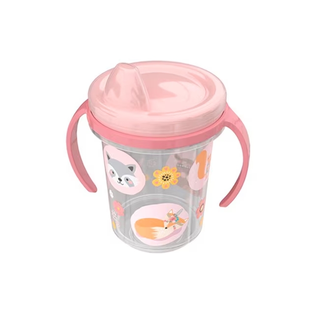 CANECA DE PLASTICO INFANTIL TRIO ROSA COM ALCA E TAMPA DECORADA 330ML - PLASUTIL