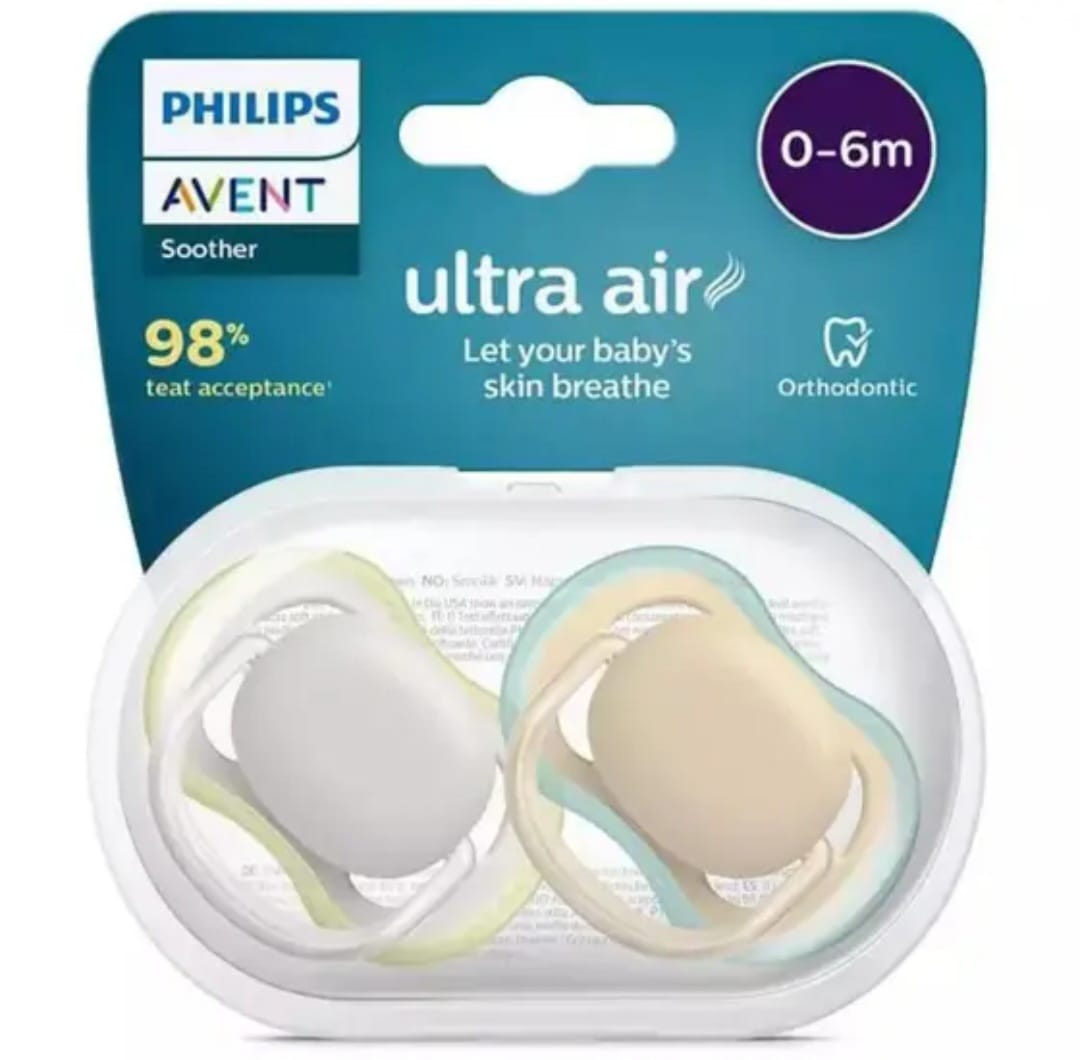 CHUPETA ULTRA AIR LISA 0-6M 2UN BEGE/VERDE E BRANCA/AMARELA SCF085/15 - AVENT