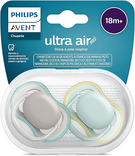 CHUPETA ULTRA AIR LISA 18M+ 2UN CINZA/ AZUL SCF349/01 - AVENT