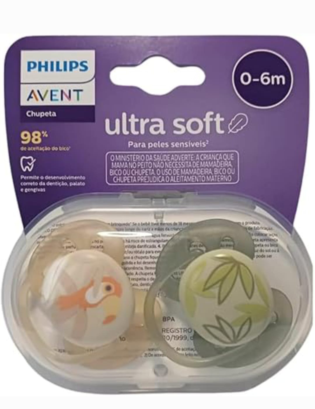 CHUPETA ULTRA SOFT DEC 0-6M 2UN FOLHA/ TUCANO SCF091/07 - AVENT