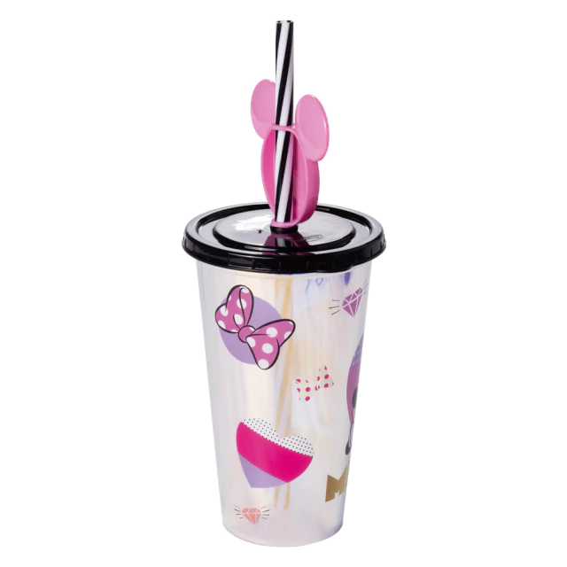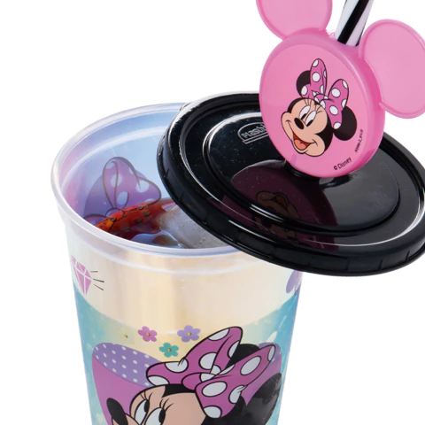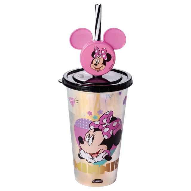 COPO DE PLASTICO INFANTIL REFRI MINNIE FURTA-COR E PINGENTE ROSA 500ML - PLASUTIL