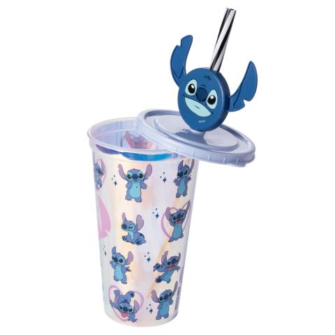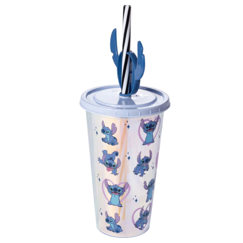 COPO DE PLASTICO INFANTIL REFRI STITCH FURTA-COR CANUDO E PINGENTE 500ML - PLASUTIL