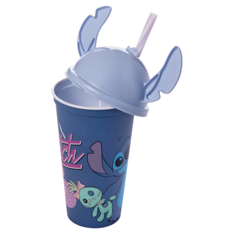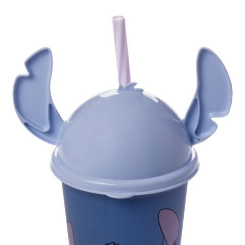 COPO DE PLASTICO INFANTIL STITCH LUDICA COM CANUDO E TAMPA 500ML - PLASUTIL