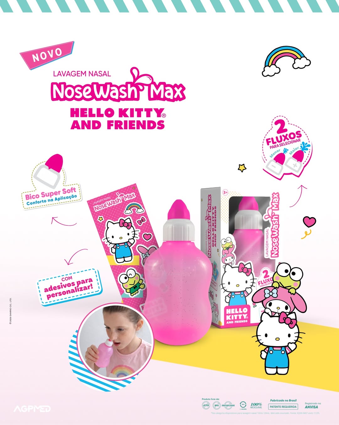 DISPOSITIVO PARA LAVAGEM NASAL HELLO KITTY 240ML NOSEWASH - AGPMED