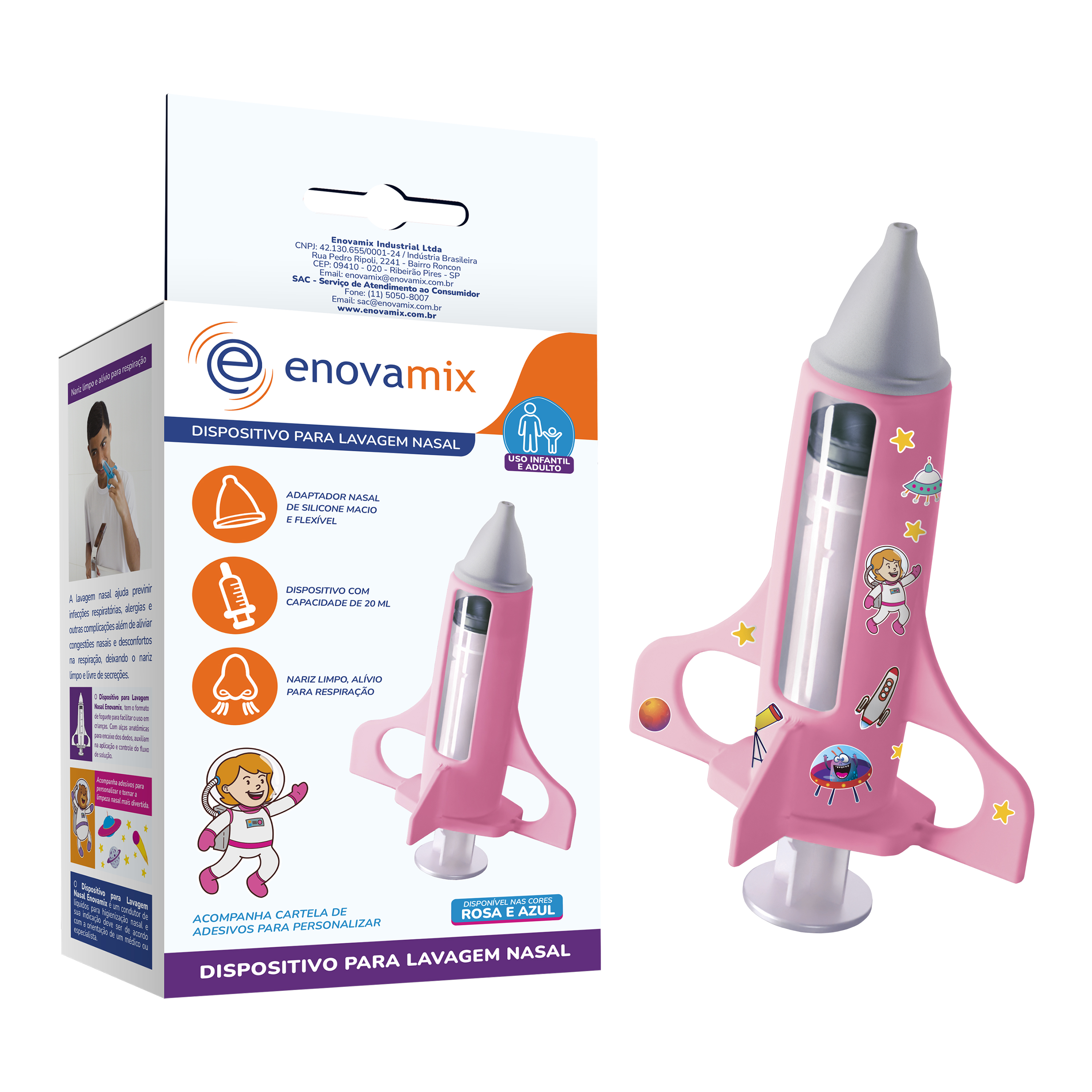 DISPOSITIVO PARA LAVAGEM NASAL ROSA 20ML - ENOVAMIX