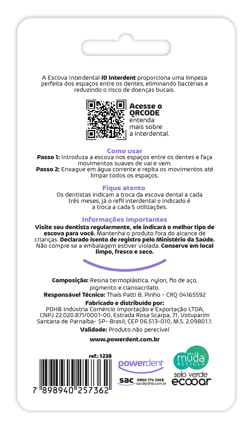 ESCOVA ID INTERDENT COMPACTA CILINDRICA 4MM FINA REF 1238 - POWERDENT