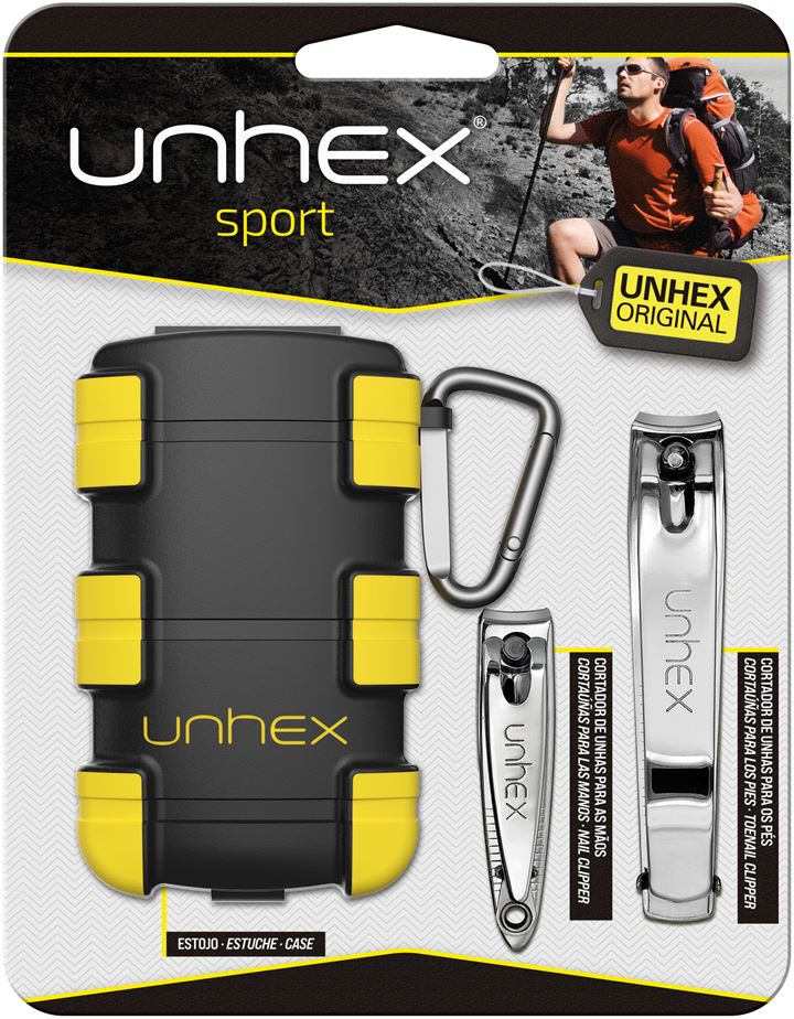 ESTOJO + 2 CORTADOR DE UNHAS + MOSQUETAO UN AMARELA SPORT UNHEX - MERHEJE