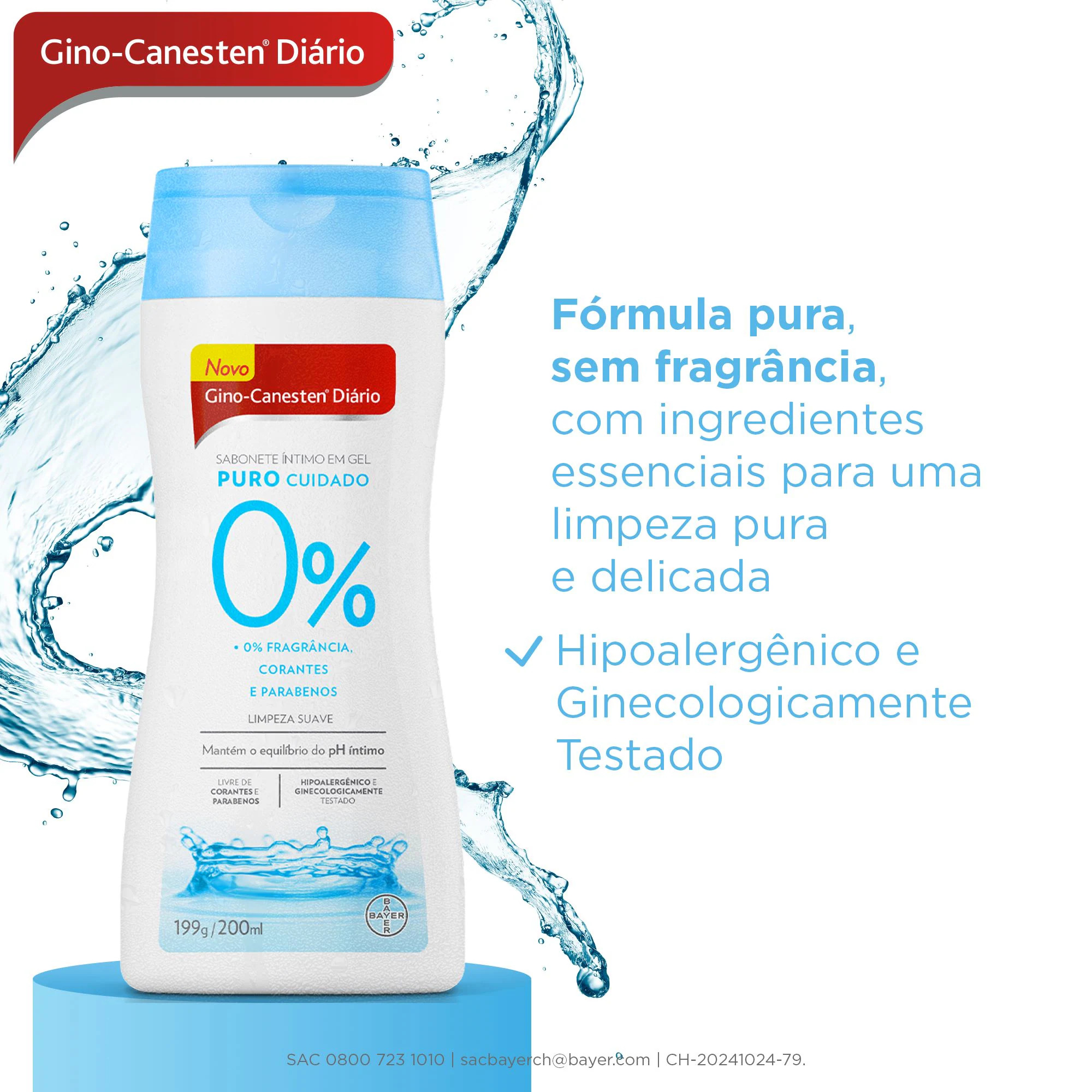 GINO CANESTEN PURO CUIDADO 0% SABONETE INTIMO GEL DIARIO 200ML - BAYER