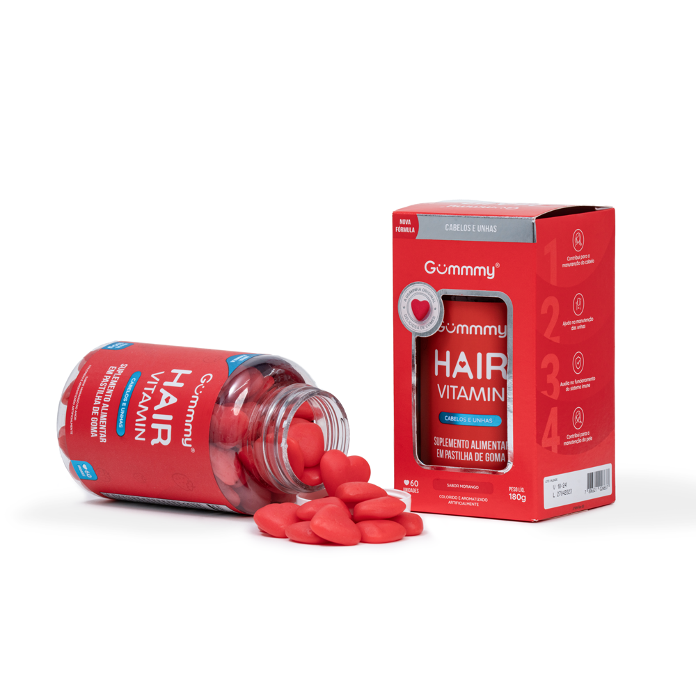 GUMMY HAIR SABOR MORANGO GOMAS 60UN CABELO, PELE E UNHA - NUTRIN GROUP