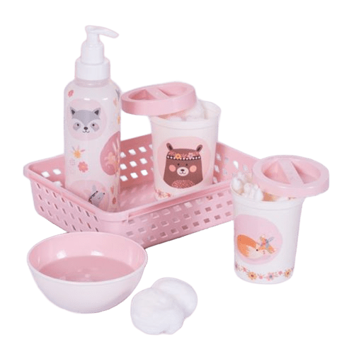 KIT DE HIGIENE DE PLASTICO 5 PECAS ROSA DECORADA INFANTIL - PLASUTIL