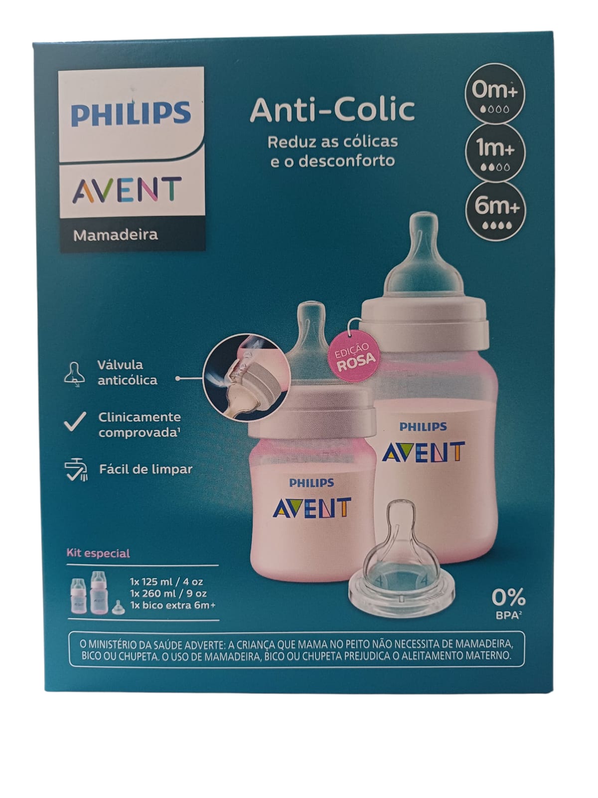 KIT DUPLO MAMADEIRA ANTI COLIC 0M+ 2UN 125ML/260ML ROSA + BICO N4 SCY119/14 - AVENT