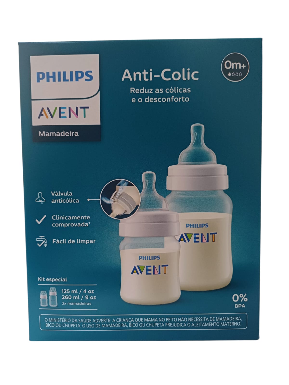 KIT DUPLO MAMADEIRA ANTI COLIC 0M+ 2UN 125ML/260ML TRANSPARENTE SCY119/05 - AVENT