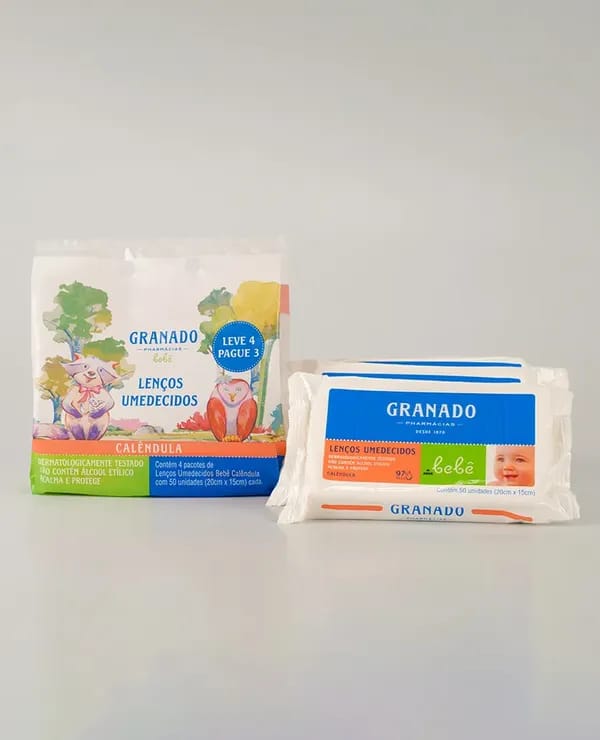 LENCO UMEDECIDO BEBE L4P3 PACOTE COM 50UN CADA TRADICIONAL - GRANADO