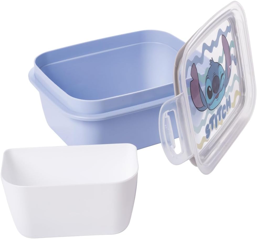MARMITA DE PLASTICO INFANTIL STITCH COM TRAVA 630ML - PLASUTIL