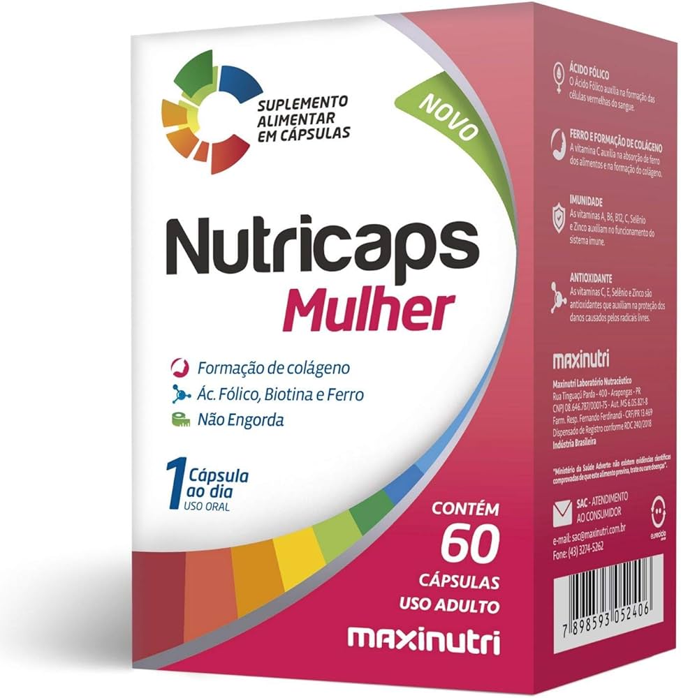 NUTRICAPS MULHER AC FOLICO, BIOTINA, FERRO, FORMAÇÃO COLAGENO 60 CAPSULAS - MAXIN