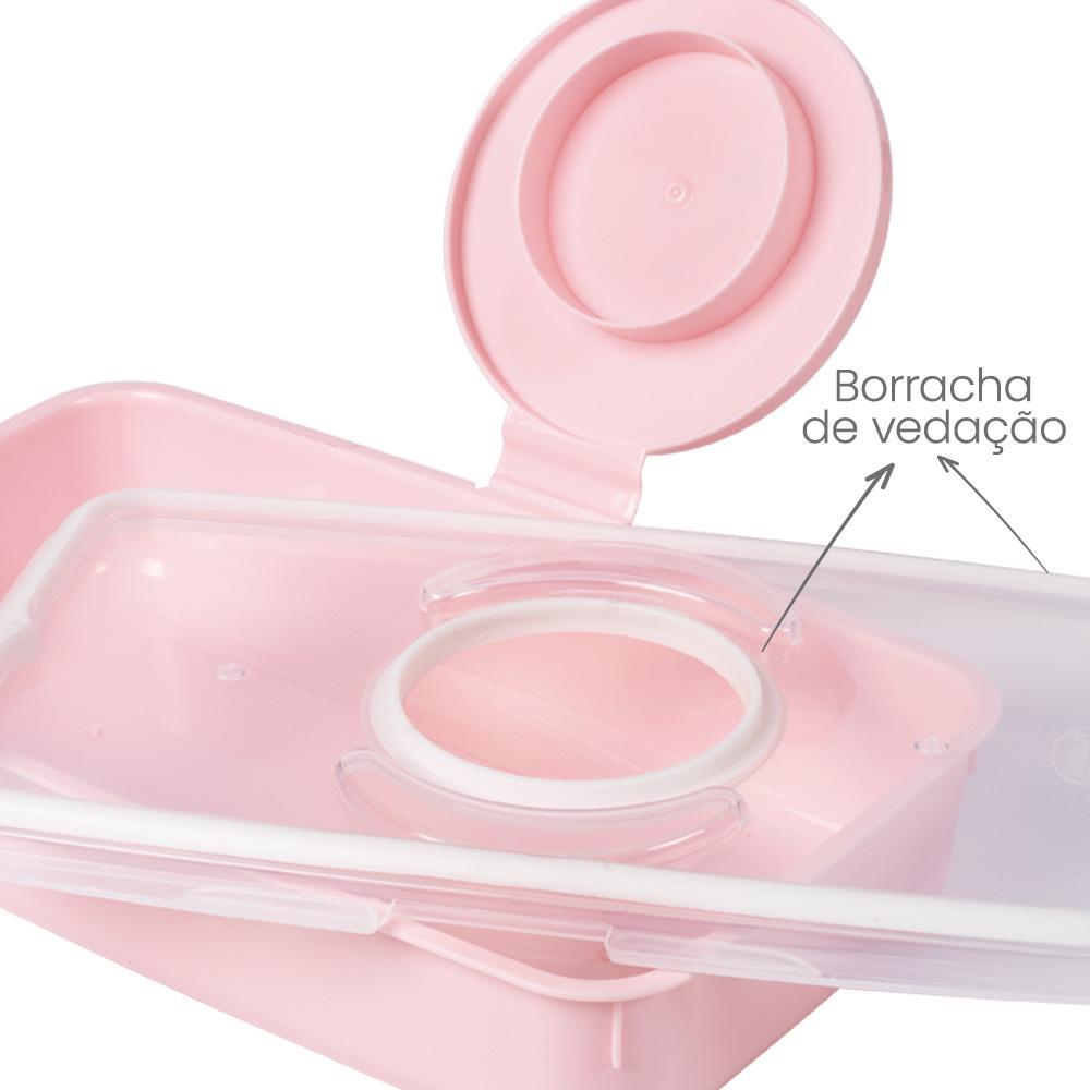 PORTA LENCO UMEDECIDO DE PLASTICO ROSA DECORADA INFANTIL 530ML - PLASUTIL