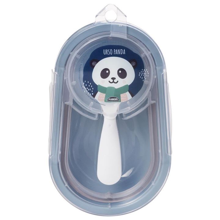 PORTA PAPINHA DE PLASTICO COM TRAVA E COLHER DECORADA AZUL INFANTIL-PLASUTIL