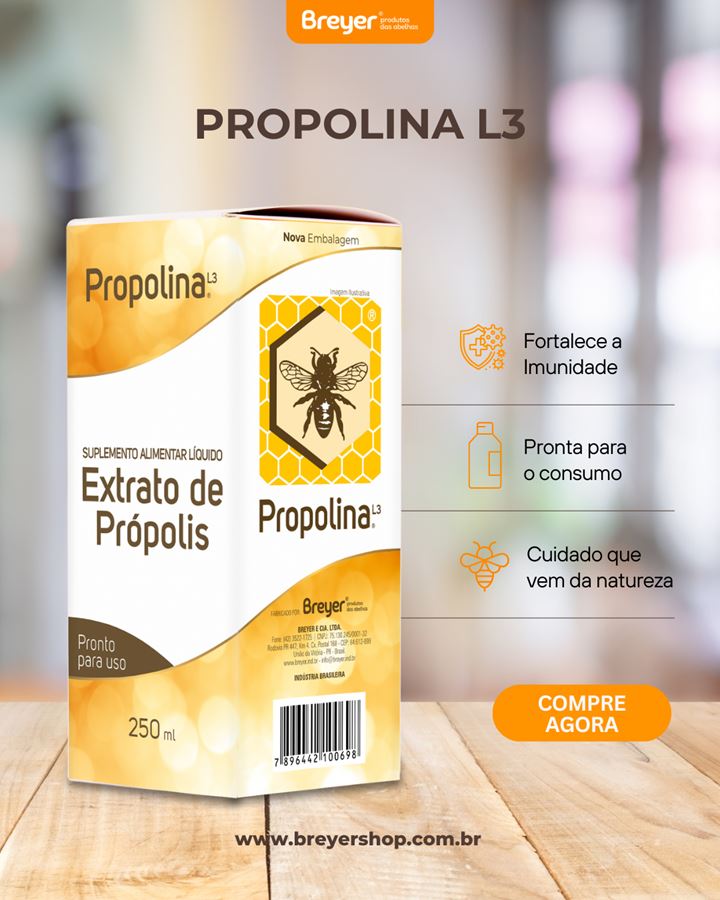 PROPOLINA L3 EXTRATO PROPOLIS MARROM ORGANICO SOLUÇÃO 250ML - BREYER