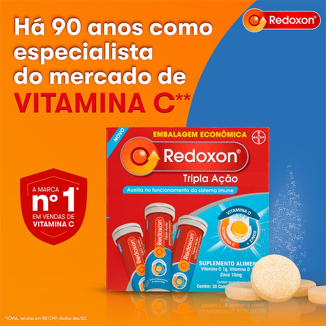REDOXON TRIPLA AÇÃO 30 COMPR. EFERV. PACK VIT C 1G, VIT D 10MG ZINCO 10MG - BAYER
