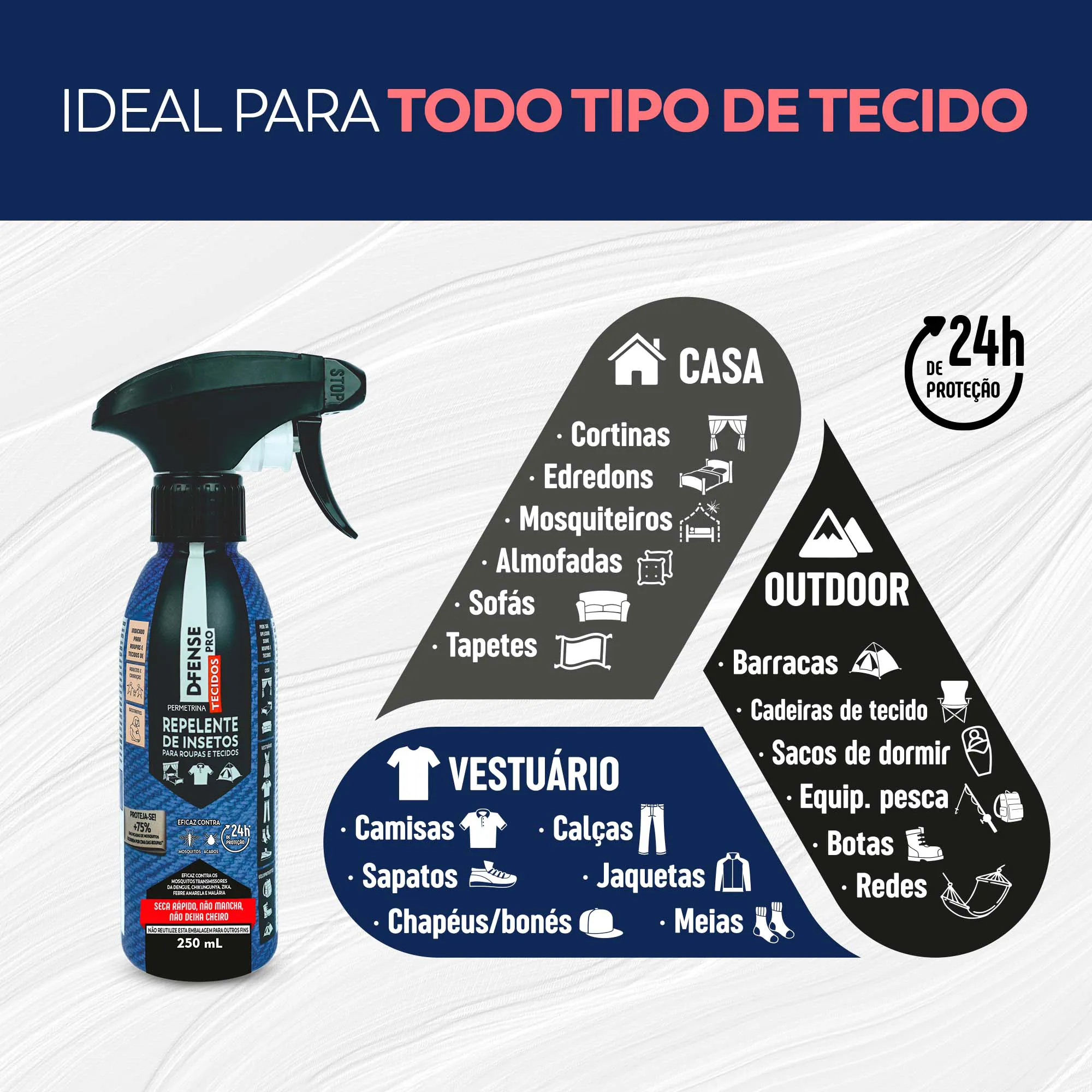 *REPELENTE DE INSETOS P/ TECIDOS D-FENSE PRO 24H 250ML - HAXEA