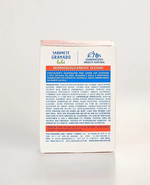 SABONETE EM BARRA DE GLICERINA BEBE 90G GLICERINA - GRANADO