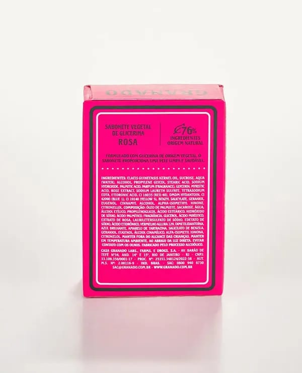 *SABONETE EM BARRA DE GLICERINA ROSA 90G - GRANADO